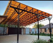 Односкатный стальной навес с кровлей из оранжевого поликарбоната